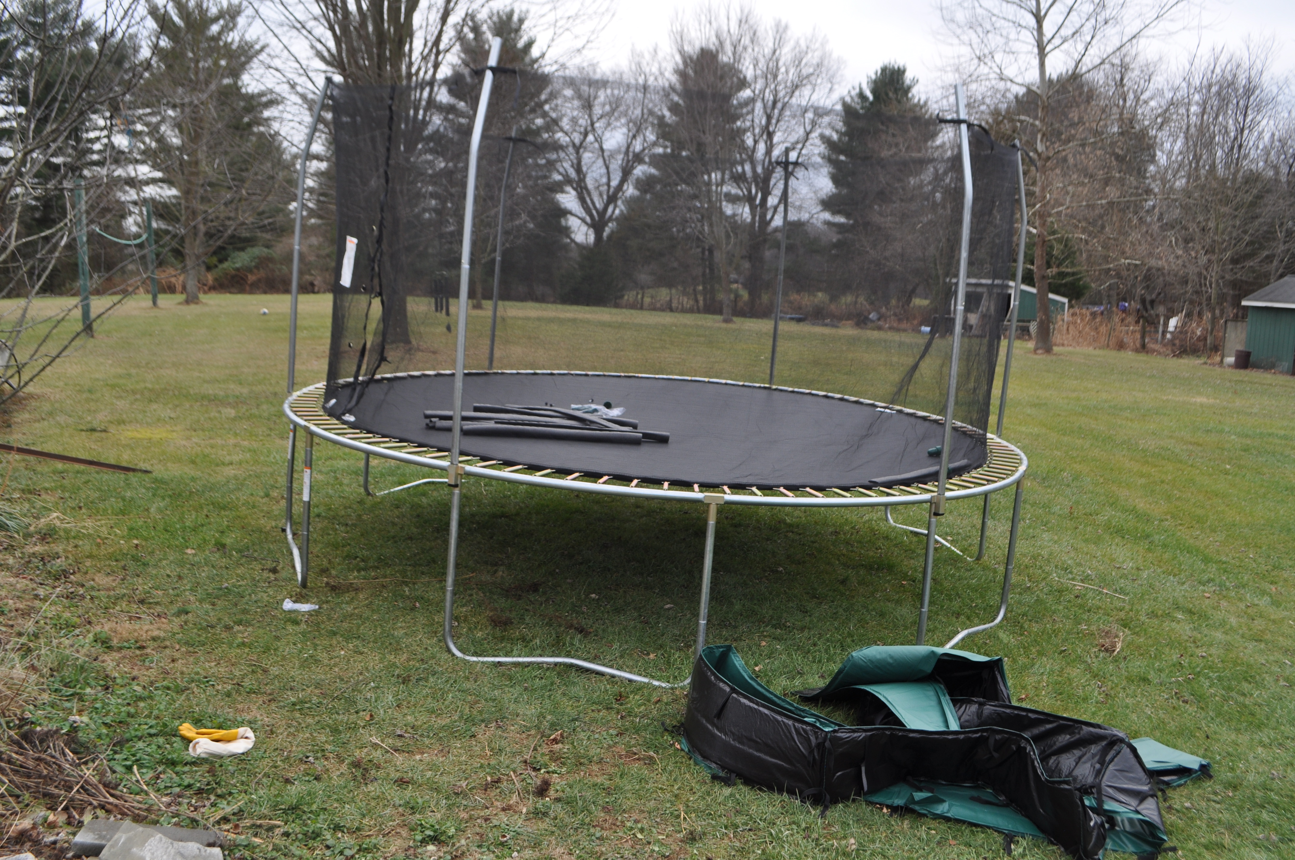 And as proof that I never learned a lesson from this, yesterday Diana and I did it again! Yesterday we gave as a gift to our eight grandchildren a gigantic outdoor trampoline that will be set up at our house and be always here to get them out of the adults’ hair by sending them outside to enjoy jumping and playing upon like their fathers did when growing up at the same house. However, the trampoline was shipped to us in two very large boxes, and there is “some assembly required.” Ugh! Pieces!